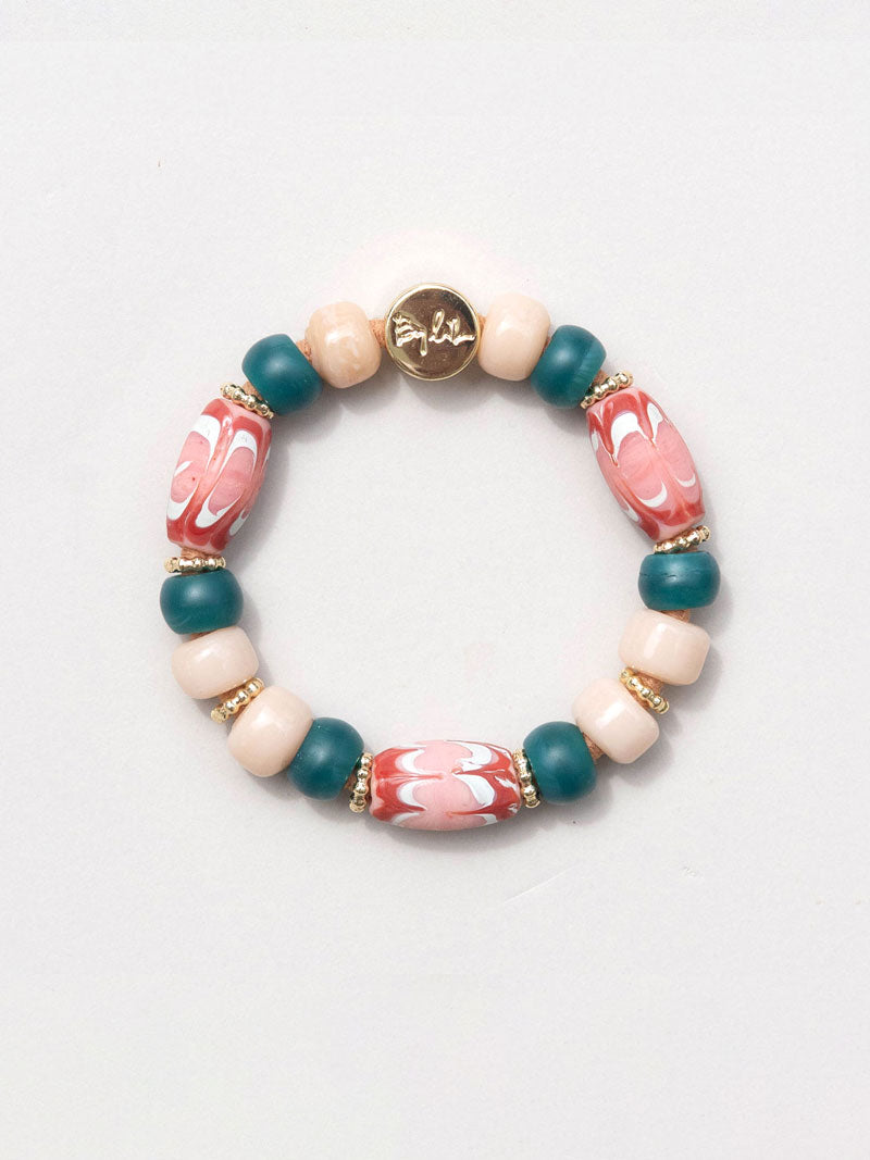 This versatile bracelet doubles as a stylish hair tie, featuring hand-painted beads paired with elegant gold-plated accents and striking turquoise wood beads. Handmade with attention to detail, it offers both functionality and a unique boho-chic aesthetic, perfect for adding a refined touch to your look while keeping your hair effortlessly secured.