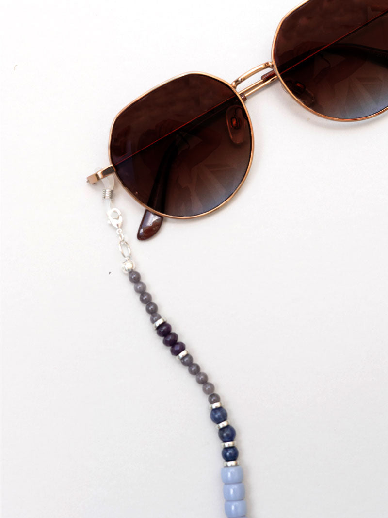 Cool, calm, and quietly powerful — Indigo channels the energy of a city sky at dusk. Soft blue hues meet deep purples, dark grays, and silver accents for a palette that’s as dreamy as it is grounded. Whether you wear it as a sunglasses chain or a necklace, Indigo brings that low-key luxe vibe that turns everyday into elevated.