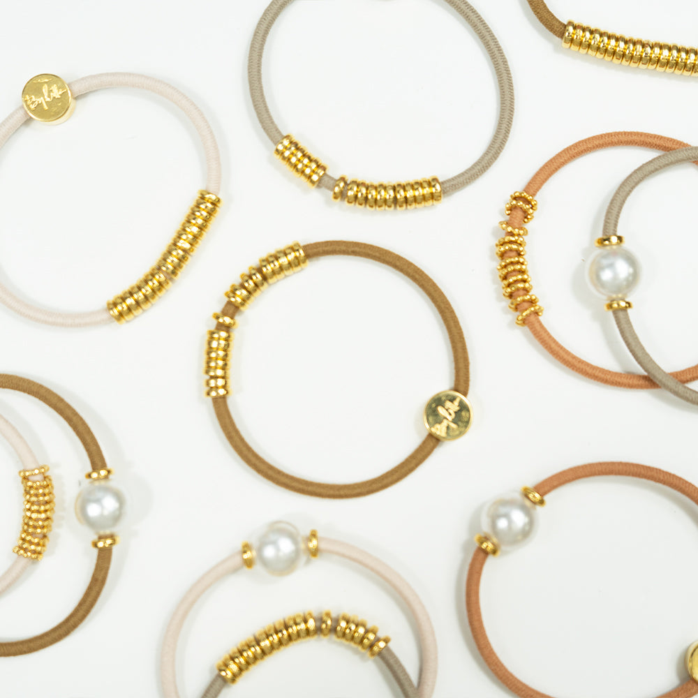 By Lilla is an all-in-one hair tie that doubles as a stylish stackable bracelet - aka, the only hair tie bracelet you'll ever use again.