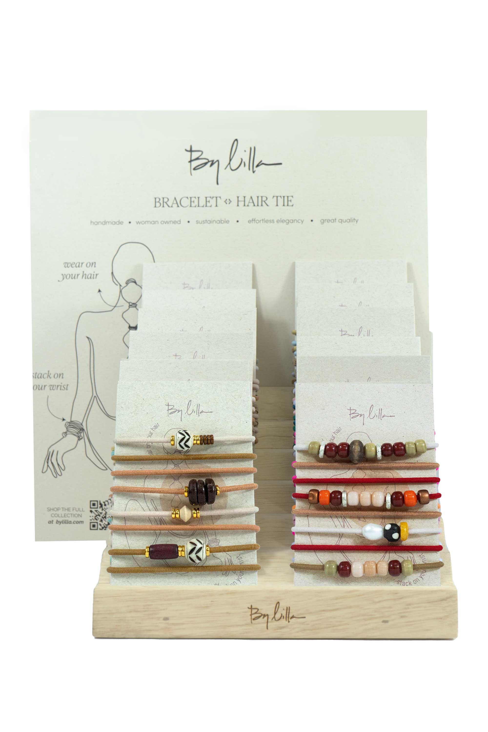 By Lilla is an all-in-one hair tie that doubles as a stylish stackable bracelet - aka, the only hair tie bracelet you'll ever use again.