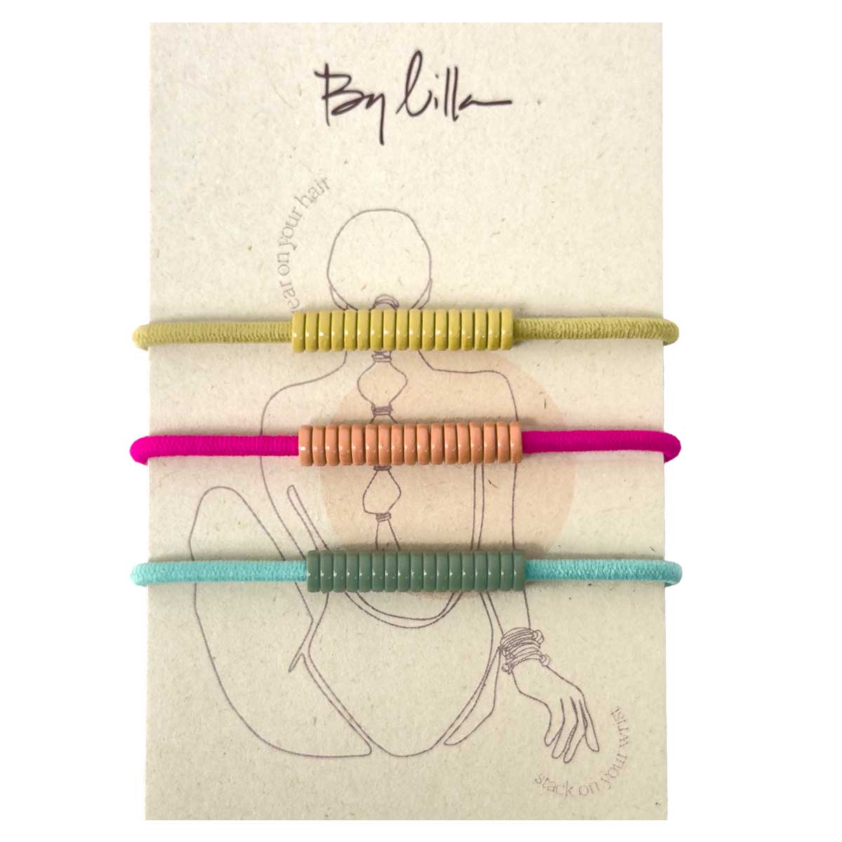 By Lilla is an all-in-one hair tie that doubles as a stylish stackable bracelet - aka, the only hair tie bracelet you'll ever use again.