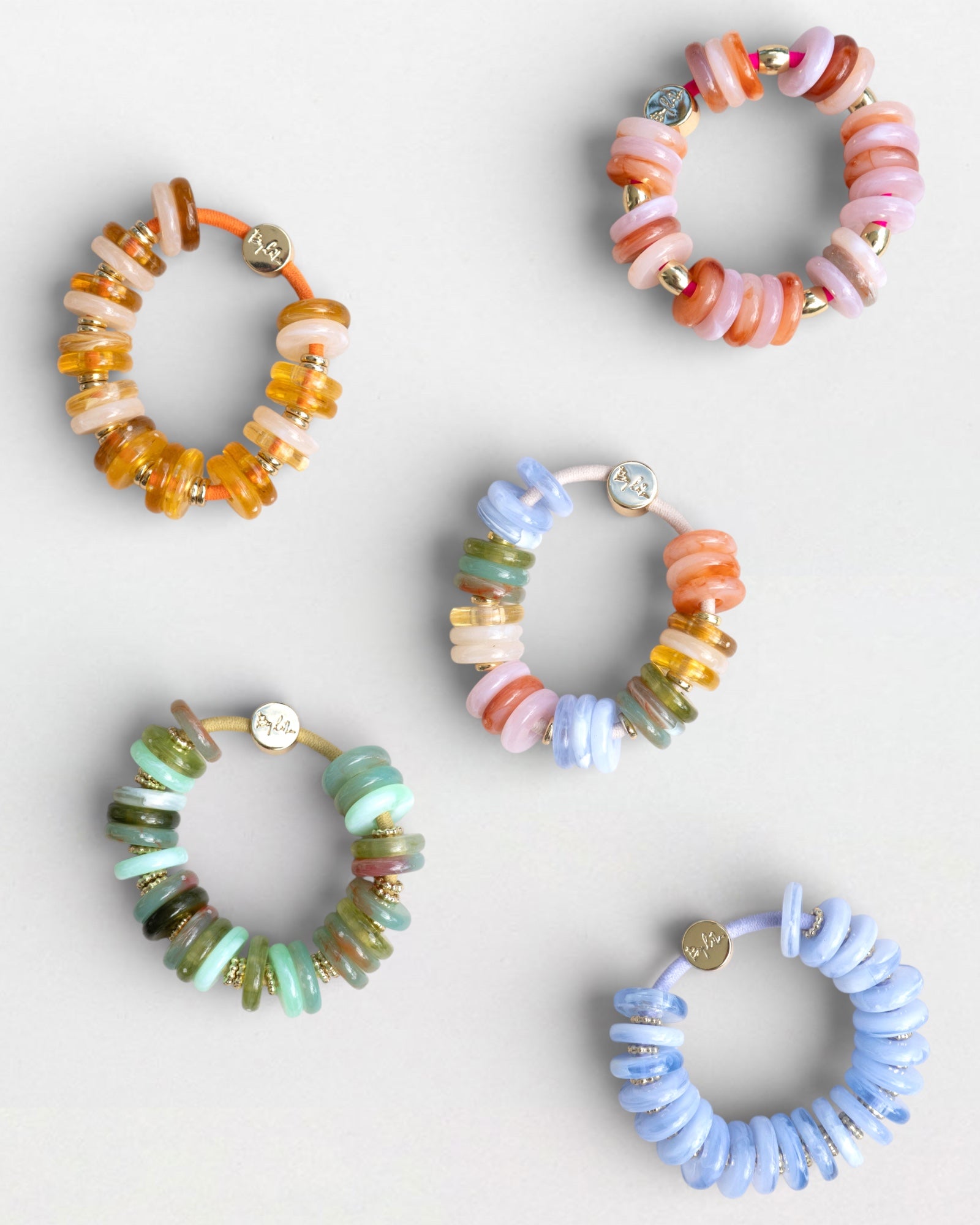 Set on a coordinating elastic and finished with the signature By Lilla charm, the FORGET ME NOT capsule transitions seamlessly from bracelet to functional hair tie—adding a whisper of sweetness to your everyday stack.