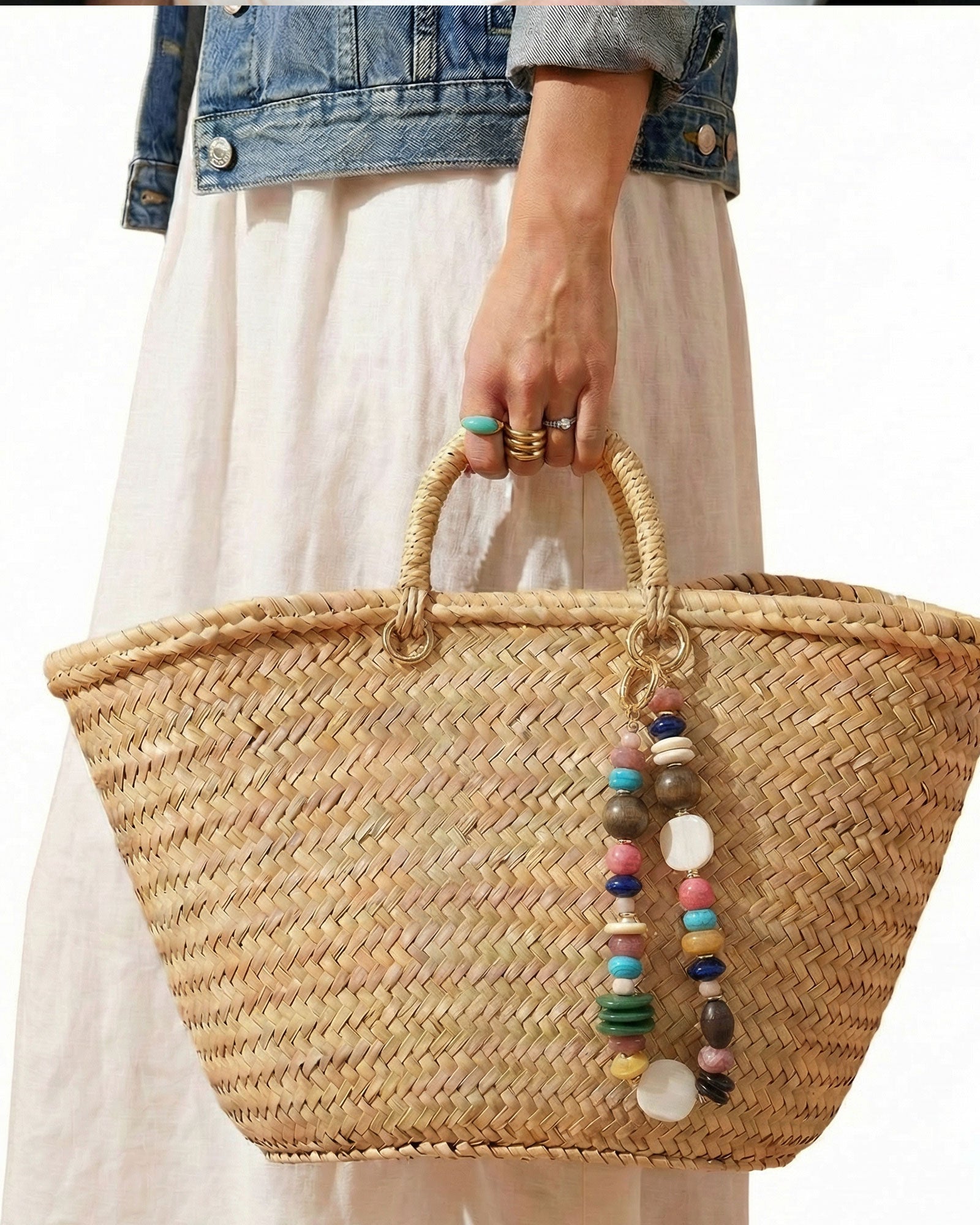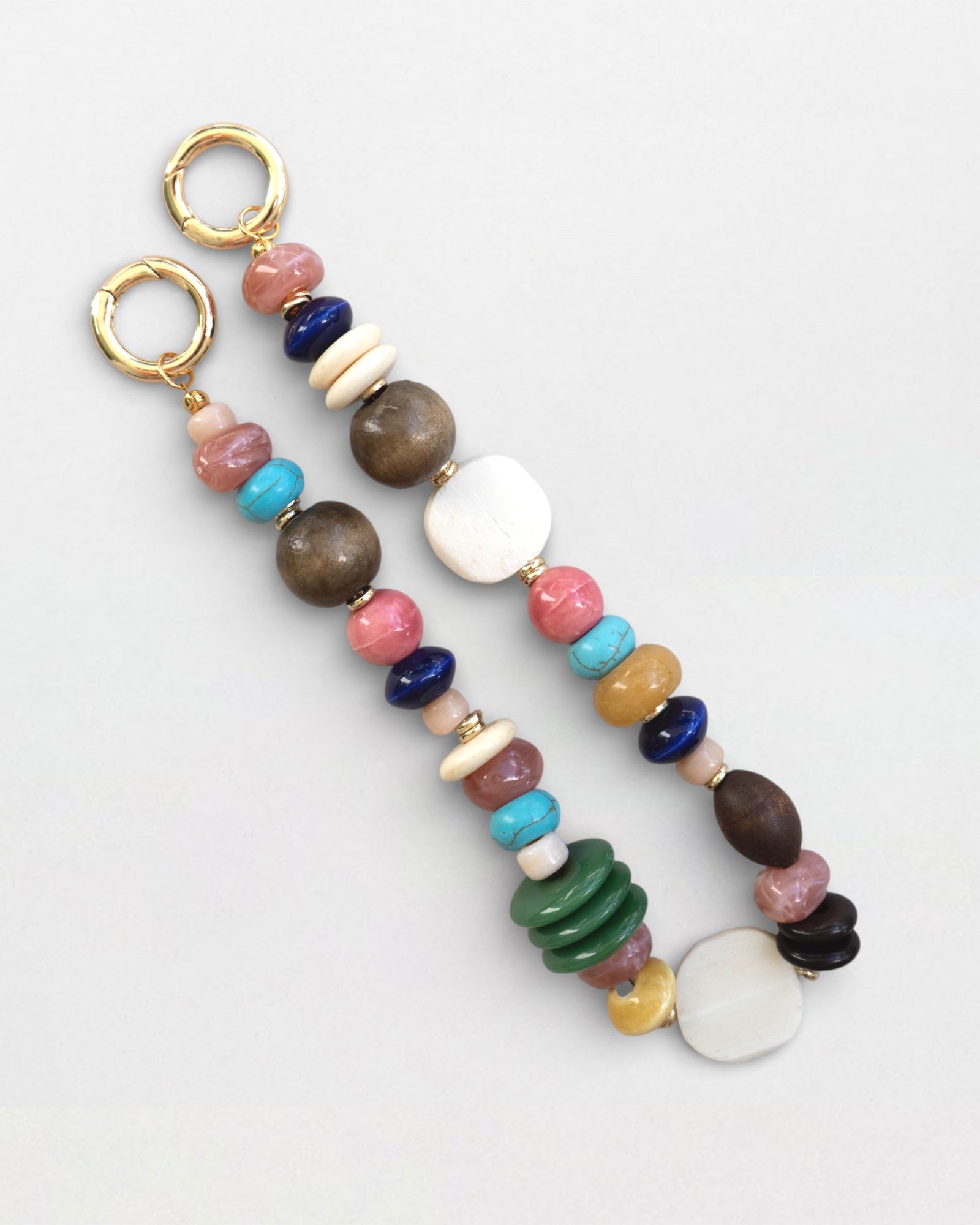 Hand-strung with an eclectic mix of glossy greens, juicy pinks, ocean blues, warm woods, creamy neutrals, and sculptural shell-like accents, this charm brings a playful, fruit-inspired burst of color to any bag.