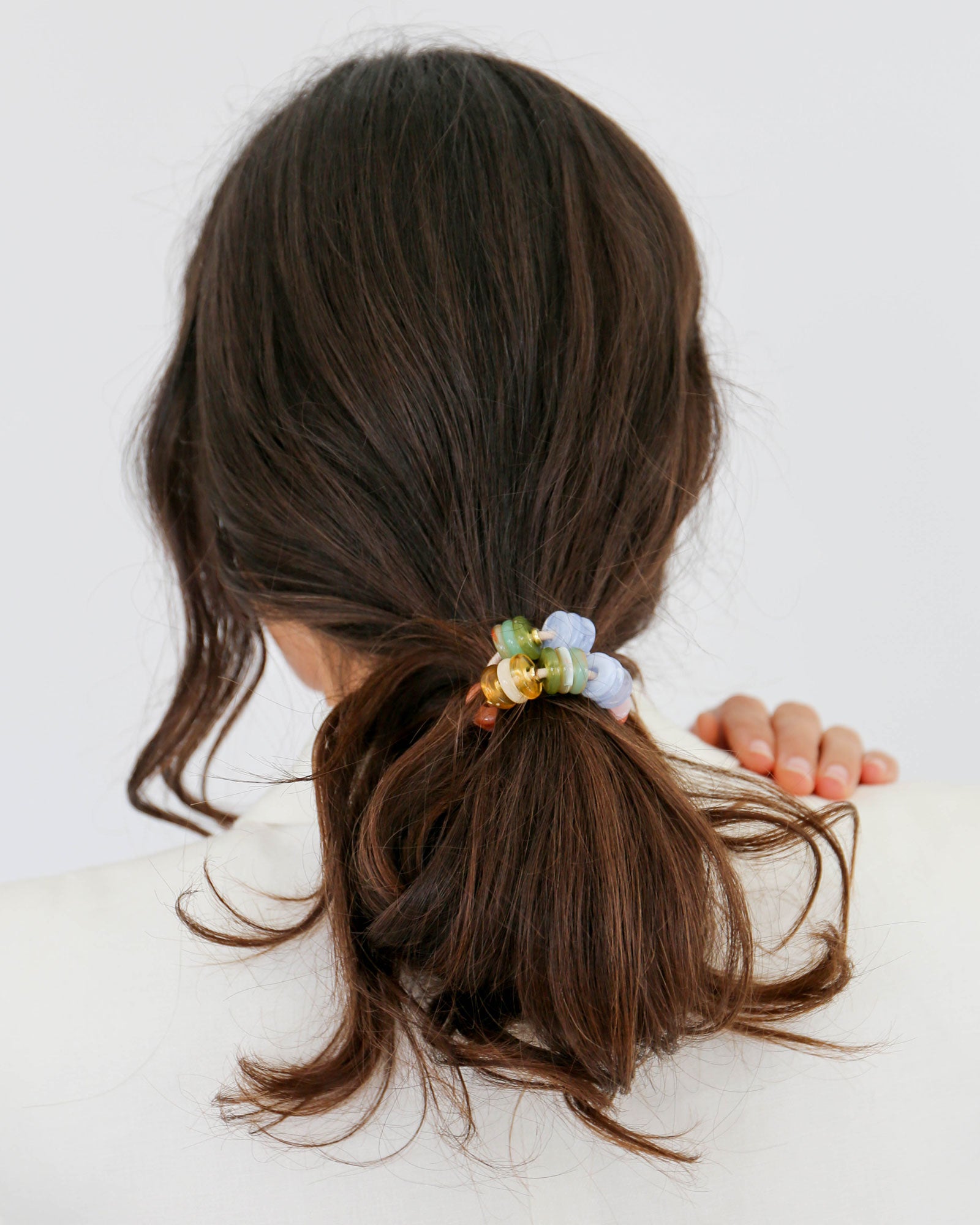 Designed to transition seamlessly from statement bracelet to functional hair tie, the GARDEN PARTY capsule brings an easy, lighthearted energy to your everyday stack—perfect for adding a pop of color and personality to any outfit.