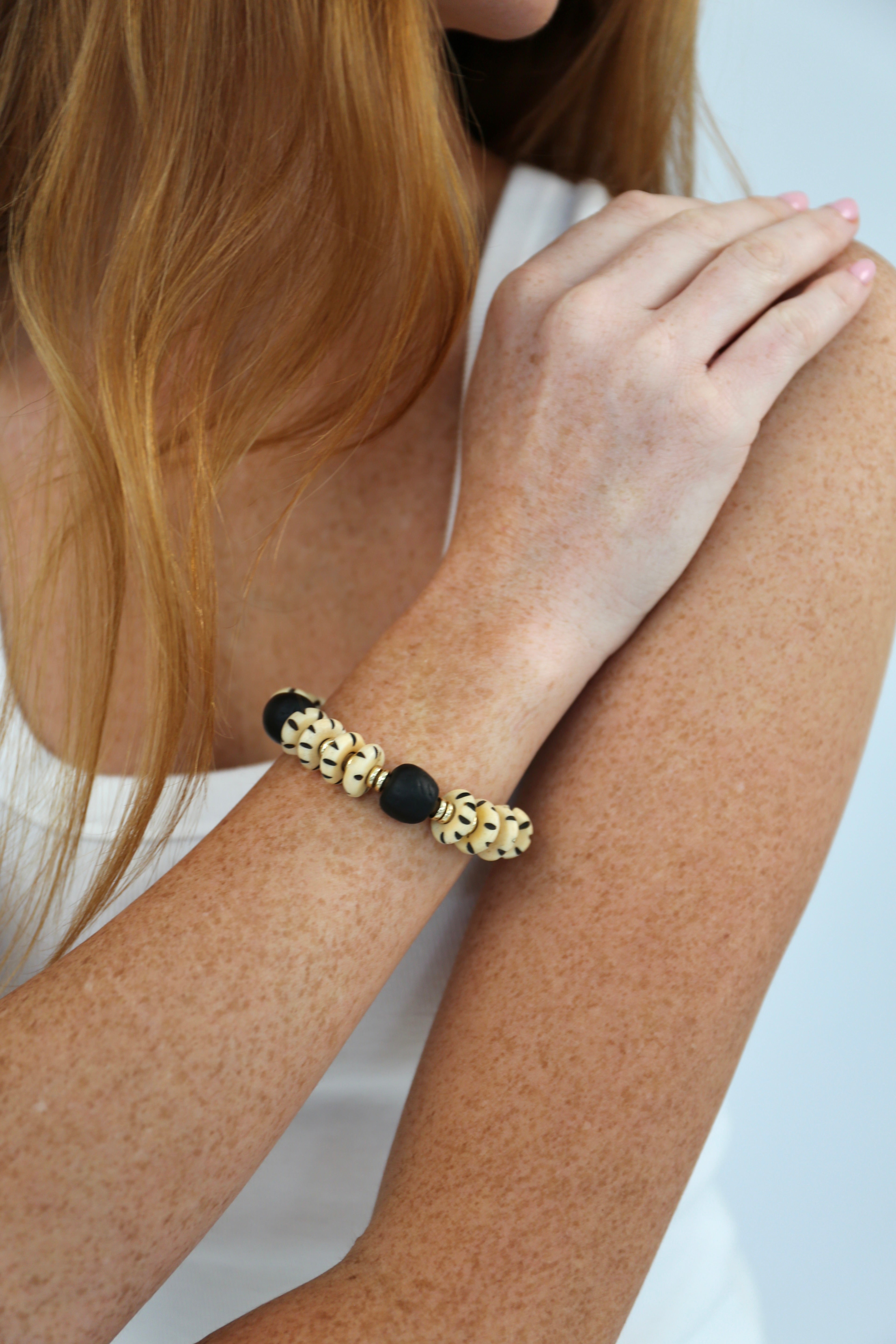 This versatile bracelet from our Capsule collection: Jungle Ave is expertly handcrafted in Colombia using natural beads and gold-plated discs. Designed to complement natural tones, it serves both as a stylish wrist accessory and a functional hair tie, adding effortless flair to your look while maintaining quality and craftsmanship.