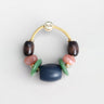 Hand-strung with a bold mix of deep navy, warm wood tones, glossy green discs, and soft melon-pink beads, this piece delivers a fresh, color-forward vibe grounded in organic texture. Finished with polished gold accents and set on a warm yellow elastic, it strikes that perfect balance between playful and elevated.