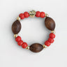 Hand-strung with rich wooden beads and vibrant saffron-toned accents, this piece captures the warmth and depth of the spice it’s named after. Polished gold details add a subtle glow, creating a striking balance between grounded texture and lively color.