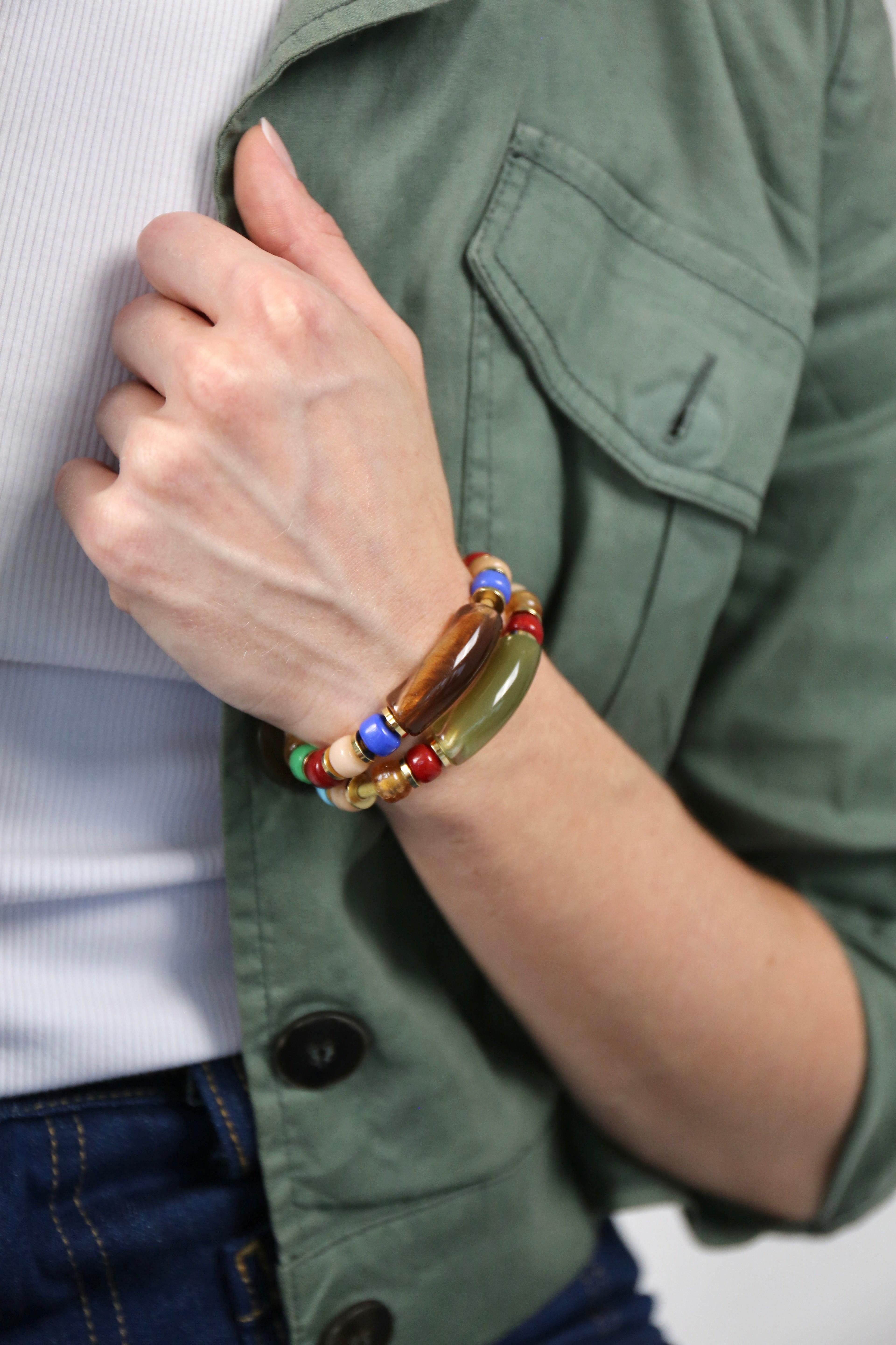 Velvet Ropes is inspired by the bold elegance of the 70s disco era. Featuring glass beads in rich colors accented by pops of gold, it adds a sophisticated statement to any fall or winter outfit. This piece combines vintage flair with modern functionality, making it a standout addition to your accessory collection.