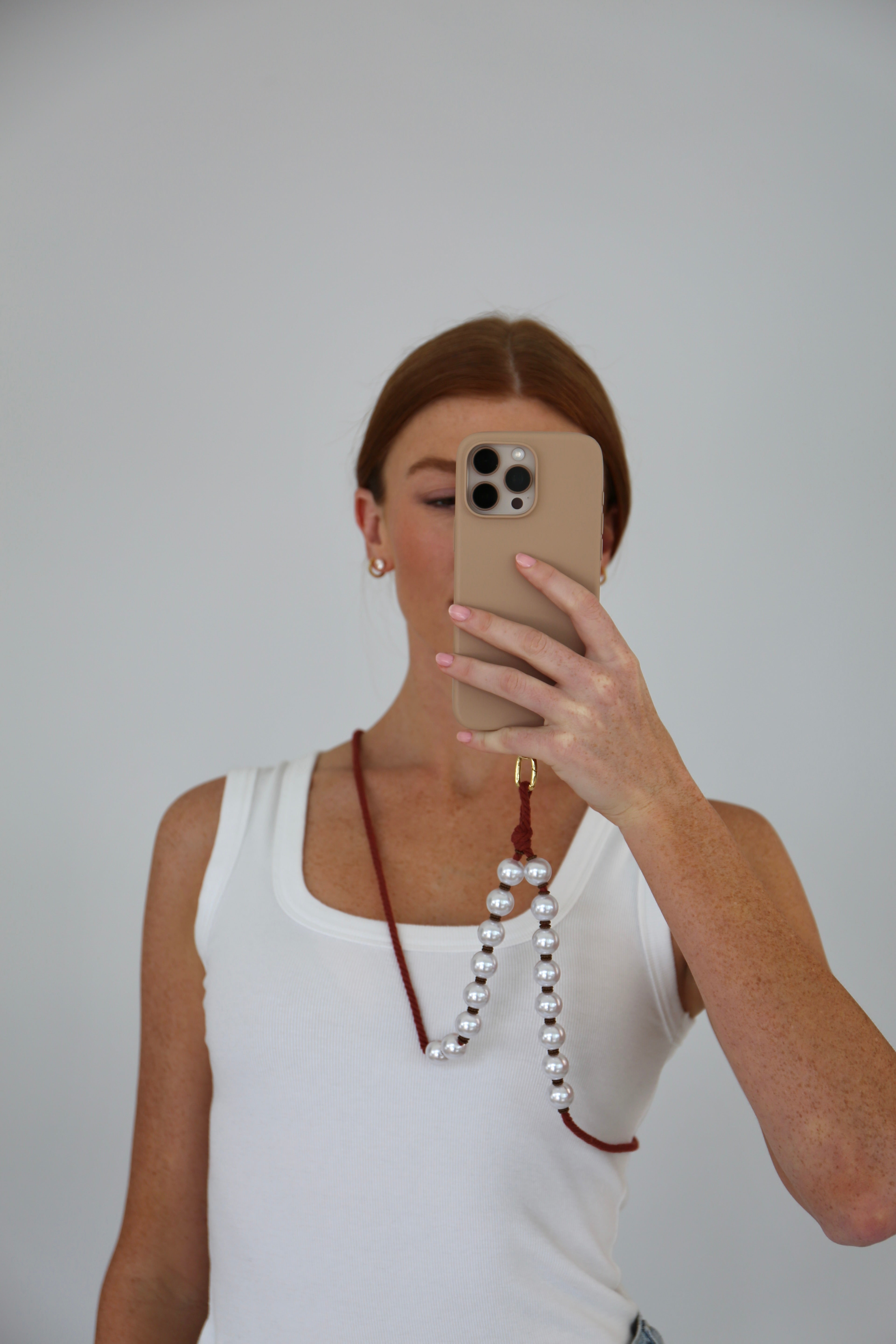 The TIMELESS Pearl Phonestrap Crossbody combines classic elegance with practical design. Featuring a beautiful rust-colored cord accented with pearls, this adjustable strap offers a comfortable, hands-free way to keep your phone close. Its versatile length ensures a perfect fit for everyone, making it an essential accessory for effortless style and convenience.