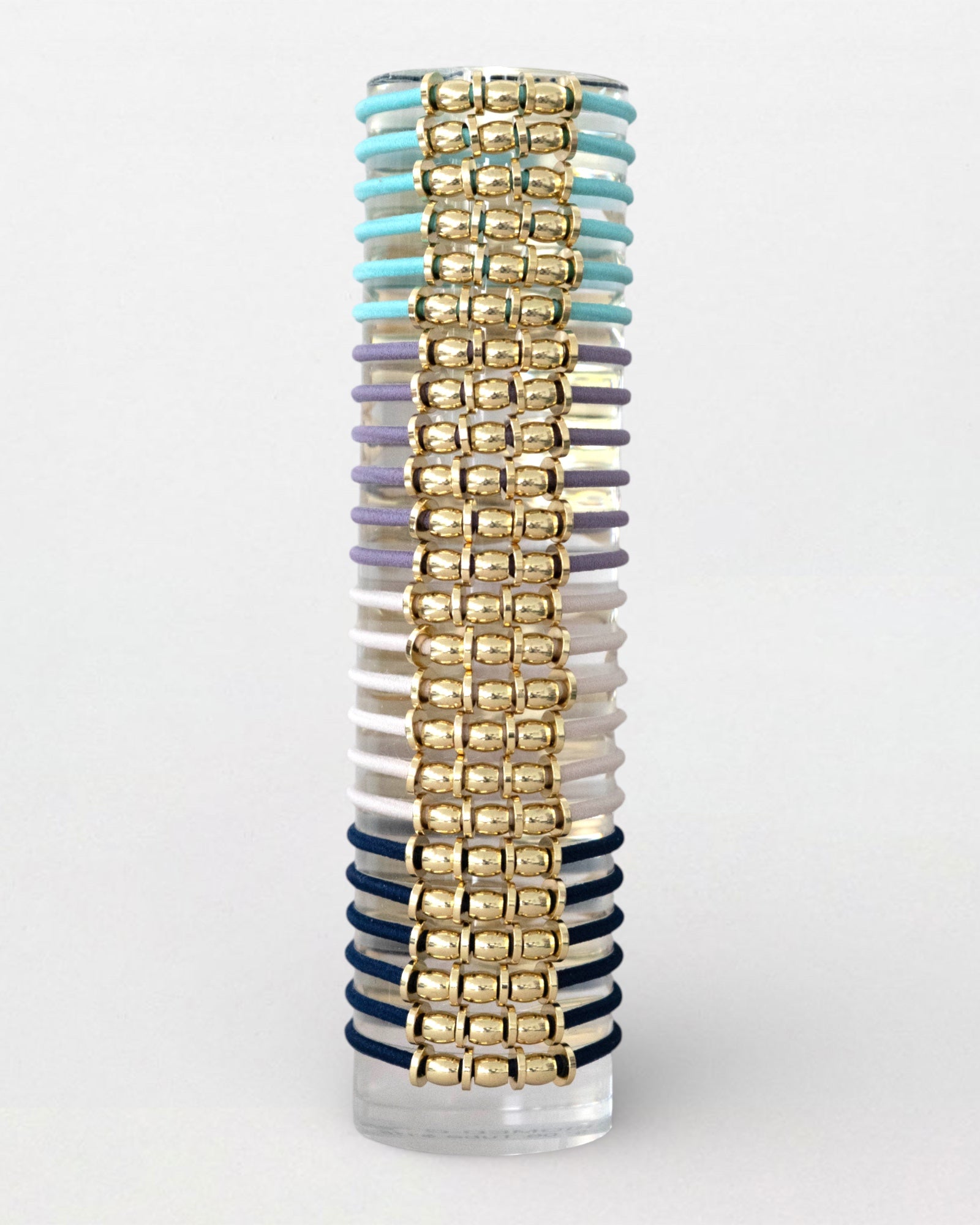 - on an acrylic tube, includes 24 elastics displayed on the tube